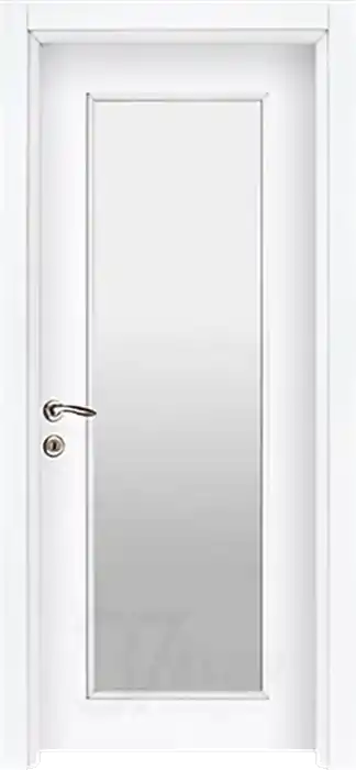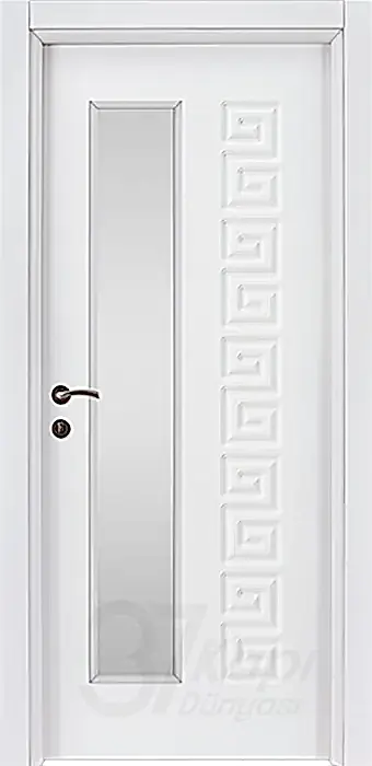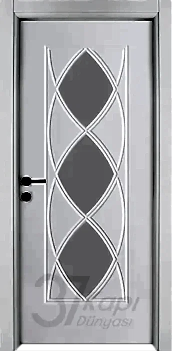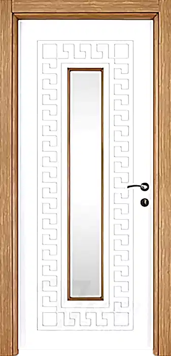 Uzun cam detayıyla daha aydınlık geçiş alanları için PVC kapı.